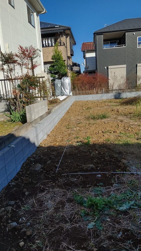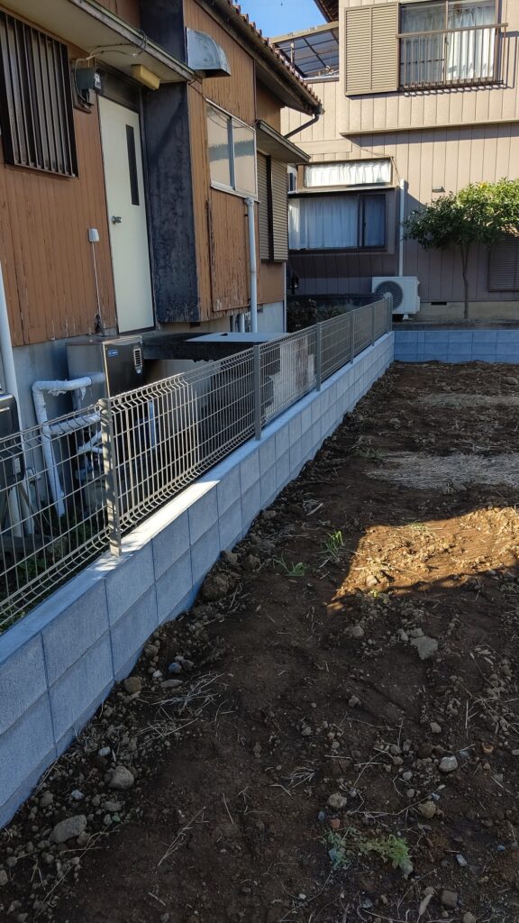 外構工事のまえに外周のブロック工事を行いました -
