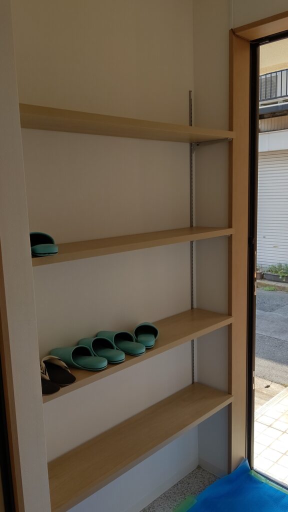 • エントランスの下駄箱を広さと高さを生かした棚に作り変えました